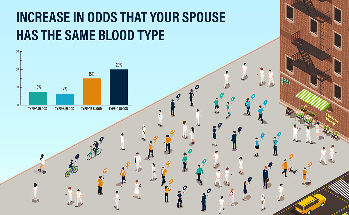How we choose a spouse is probably not random. Studies already suggest that spouses often share phenotypes — a person’s observable traits, such as body mass index, weight, height and intelligence1-7. Now, a new examination of 931,964 couples in China suggests that romantic pairs are also more l...