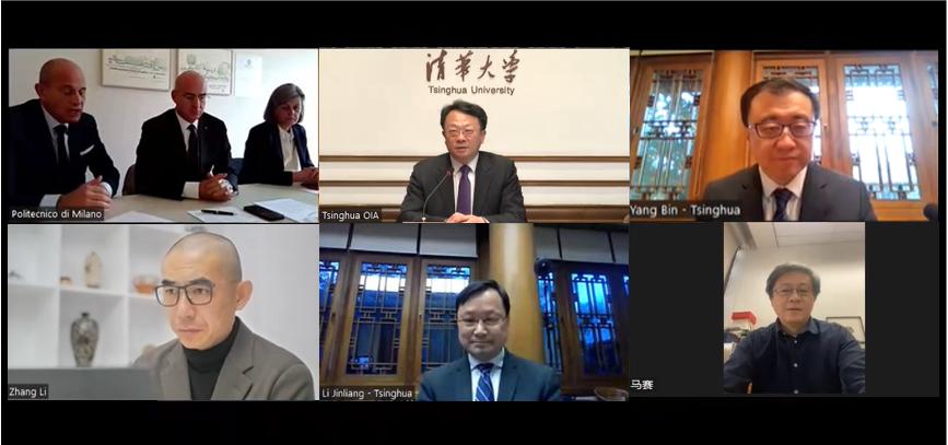 Tsinghua President Wang Xiqin met Ferruccio Resta, Rector of the Politecnico di Milano online on March 28, and signed an agreement on the presentation of Tsinghua's self-developed course "Winter Olympics and Winter Sports" to the Politecnico di Milano, a leading technical university based in Milan, Italy.