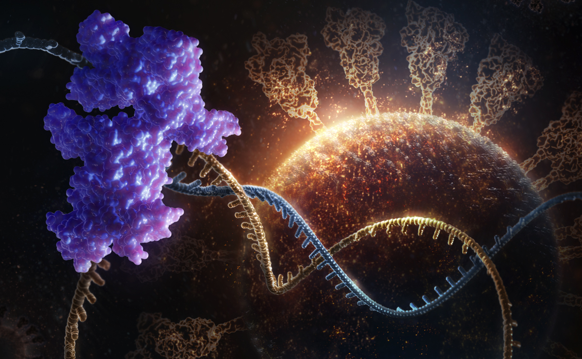 The complex constructs the cap in a four-step process. The role of the protein that catalyzes the second step of the capping process, called nucleotidyl transferase domain (NiRAN), was a mystery until this study1. “We showed that the NiRAN domain in the replication enzyme, viral polymerase nsp12, is indeed the enzyme that catalyzes the second capping action,” Lou explains.