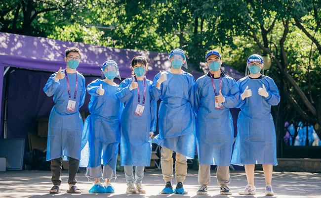 Tsinghua graduates serve as volunteers for epidemic prevention and control on campus. [Photo/Zhang Jiaqi]