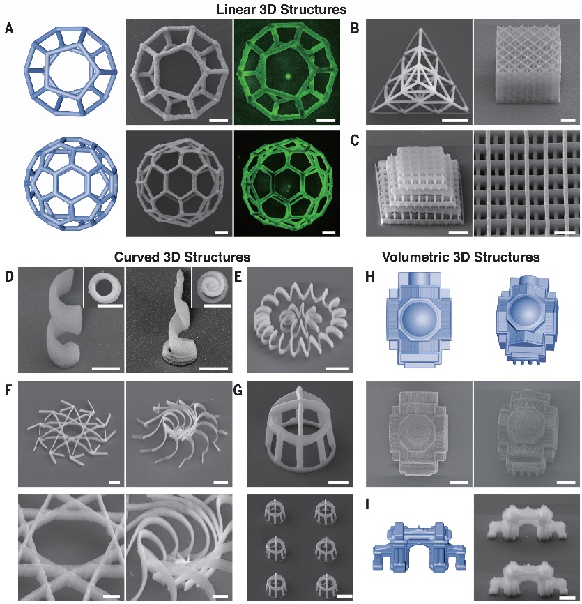 Fig. 2 Linear, curved, and volumetric 3D nanostructures