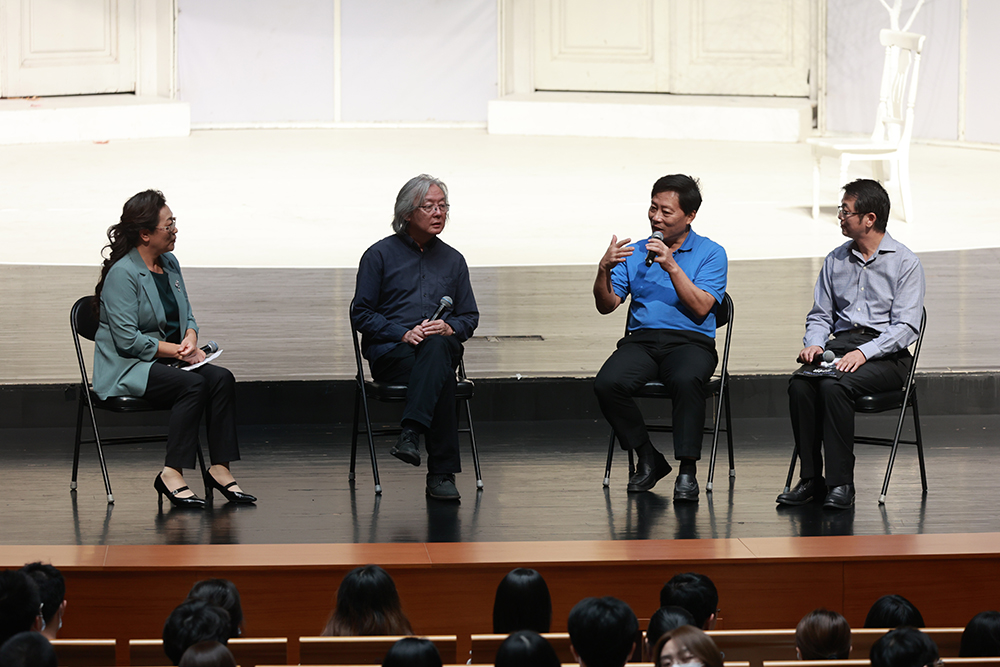 On September 3, seven students from the Department of Physics, Department of the History of Science, Department of Chinese Language and Literature and the School of Social Sciences engaged in face-to-face interaction with director Wang about the drama Copenhagen. They held discussions on the history of science, the dramatic arts, ethics and humanity and learned about the experiences that inspired the drama, allowing them to gain a deeper understanding of the drama.