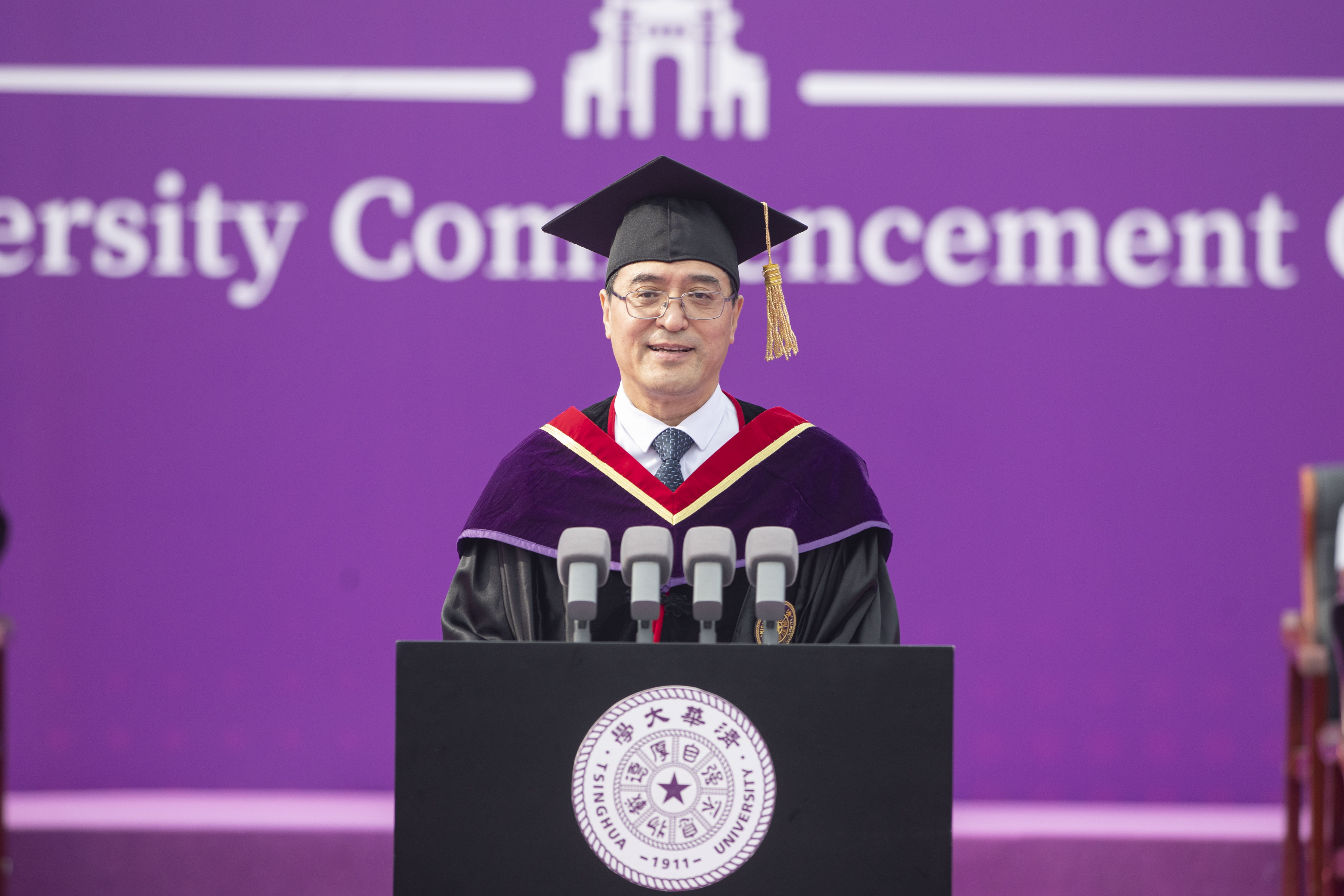 Secretary of the CPC Tsinghua University Committee Qiu Yong announced the decision to commend the excellent PhD and Master's graduates, expressing his expectations and well-wishes for the students. "Dear students, today you are about to embark on a new journey in life. On this challenging yet infinitely scenic path, only through belief, character, and hard work can you steadfastly pursue lofty life goals," he said.