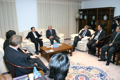 Prior to the session, held at School of Economics and Management, President Gu Binglin met with Dr. Barrett. During their talk, President Gu pointed out that as Tsinghua becomes more open and internationalized, more and more CEOs will deliver speeches and teach here, which will benefit the students.