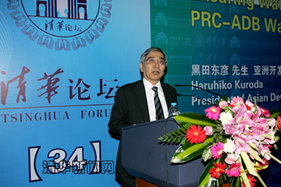 Mr. Haruhiko Kuroda, President of Asian Development Bank (ADB), visited Tsinghua on March 23 and delivered a speech at the Tsinghua Forum.