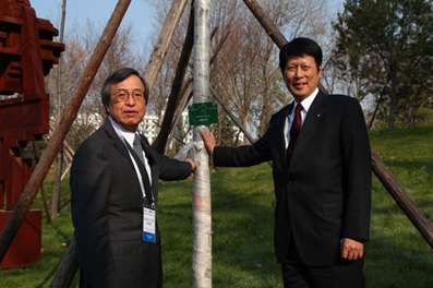 Tsinghua University President Gu Binglin had a discussion that morning with Professor Kaoru KAMATA, his counterpart at Waseda University, prior to the opening ceremony. The two leaders exchanged ideas on future cooperation between their universities. Professor Katsuichi UCHIDA, Vice President of Waseda University and Tsinghua University Vice President Yuan Si were also present at the discussion.