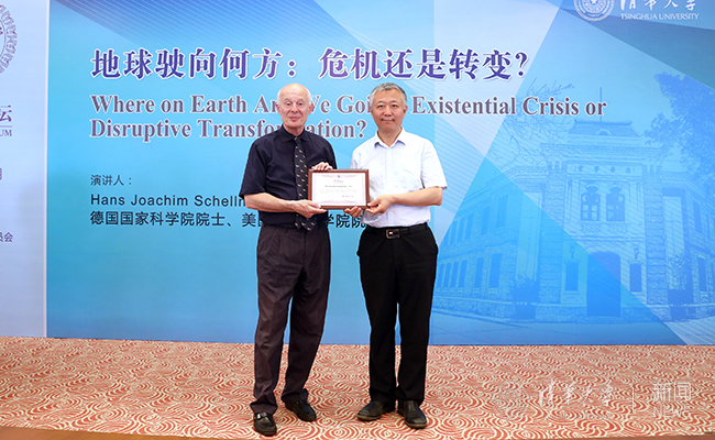 On June 24th, Professor Hans Joachim Schellnhuber, member of the German Academy of Sciences and the US National Academy of Sciences, was invited to attend the Tsinghua Forum and gave a lecture entitled “Where on Earth Are We Going: Existential Crisis or Disruptive Transformation?” The forum was chaired by Professor Gong Peng, Chair of the Department of Earth System Science and Dean of the School of Science at Tsinghua University.