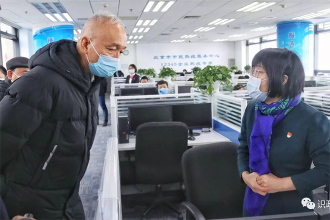 Cai Qi, Secretary of the Beijing Municipal Committee of the Communist Party of China (CPC), expresses his thanks for the hard work of experts providing hotline support/consultations. (Far right is Ms. Li Yan, the Director of the Center for Counseling and Psychological Development).