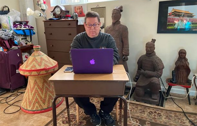 Rick Dunham, an international professor at Tsinghua University, shares stories on distance teaching to his class of students spread out over 22 time zones.