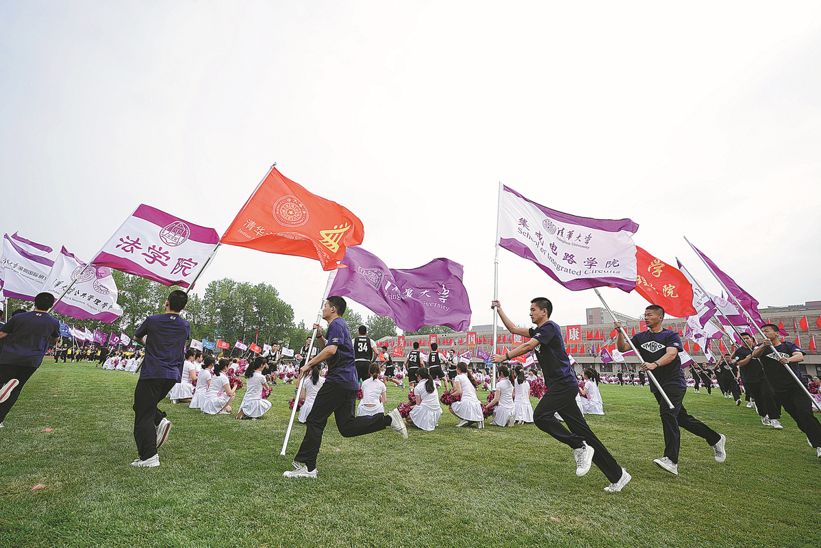 Students attend a campus event to celebrate the 110th anniversary of the founding of Tsinghua University in Beijing on April 25, 2021. [Photo/Xinhua]