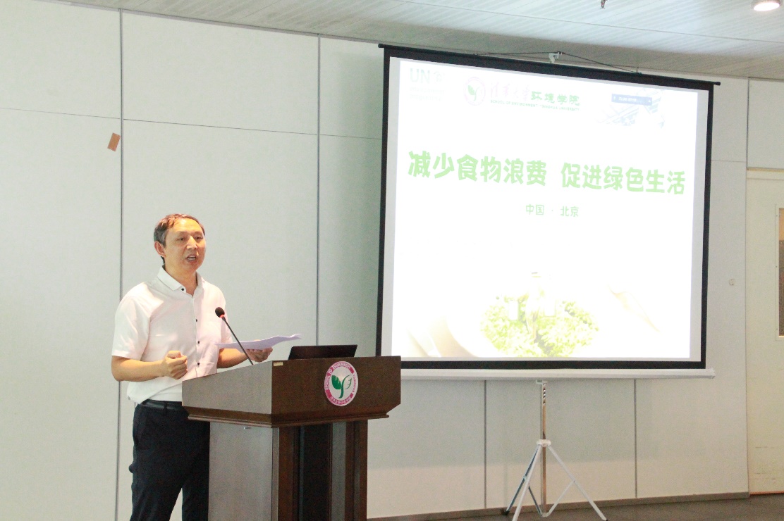 On July 23, the forum on "Reducing Food Waste and Promoting Green Living" hosted by United Nations Environment Program (UNEP) China Office and organized by the School of Environment, Tsinghua University was successfully held in the Tsinghua Sino-Italian Environmental Energy-saving Building. Representatives and experts from relevant international organizations, embassies in China, government departments, industry associations, well-known enterprises, non-governmental organizations, universities, research institutes, and student associations attended the meeting to discuss systems, strategies, methods and experiences of reducing food waste from different dimensions and at multiple levels, as well as to analyze the opportunities and challenges of reducing food waste and promoting green life for China’s ecological civilization development driven by the goal of carbon neutrality.