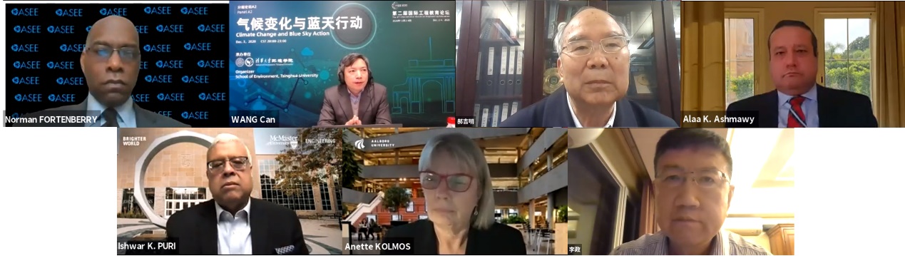Panel A2 of the 2nd International Forum on Engineering Education (IFEE 2020), organized by School of Environment, Tsinghua University, was held on 3 December.Panel A2 of IFEE 2020 “Climate Change and Blue Sky Action”, moderated by WANG Can, Chair of Department of Environmental Planning and Management, School of Environment, mainly focused onthe new requirements for engineering educationand how engineering education should respond to the new demands brought by climate challenges.