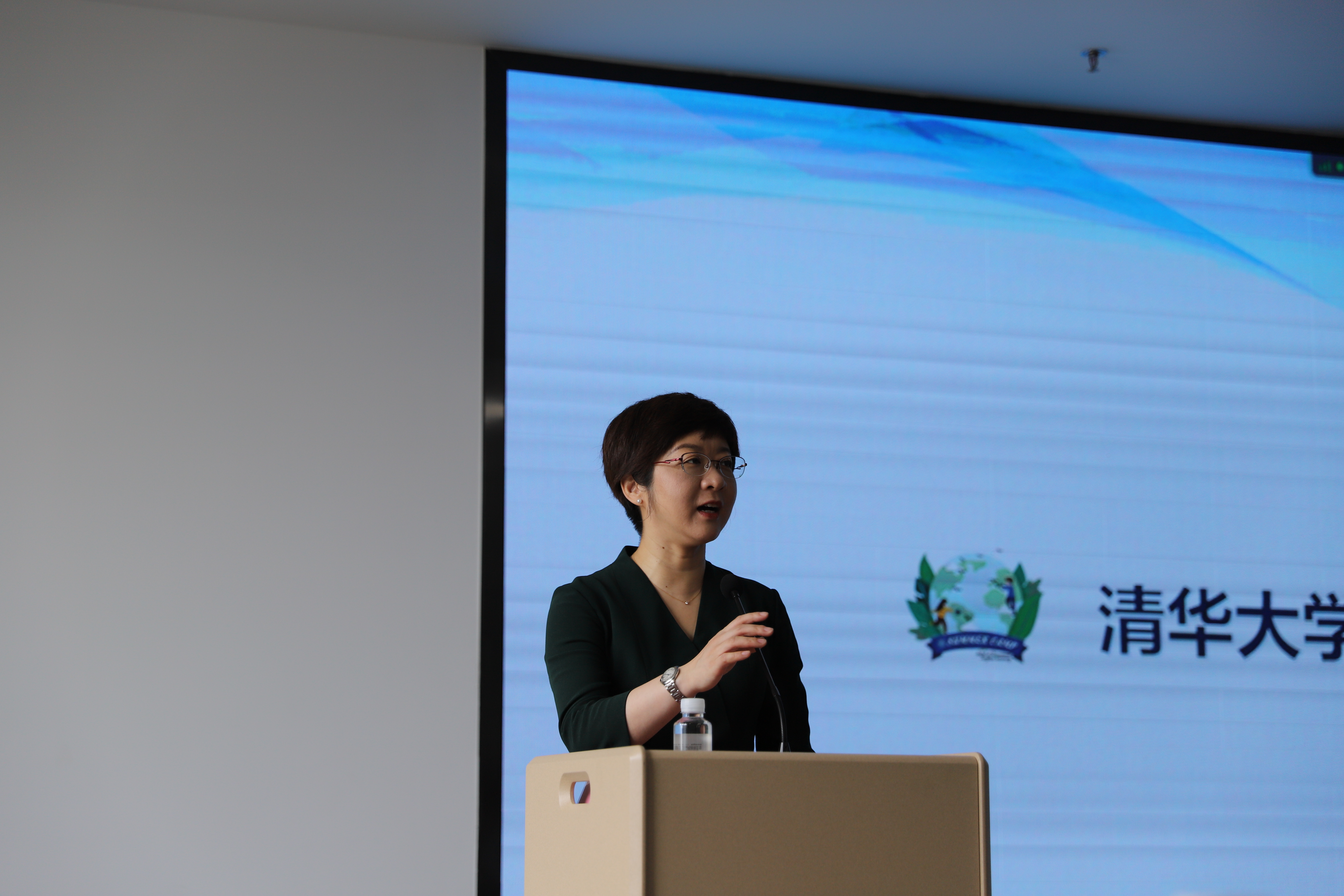 Yue Dongbei presenting the overview of Tsinghua University’s environmental disciplines