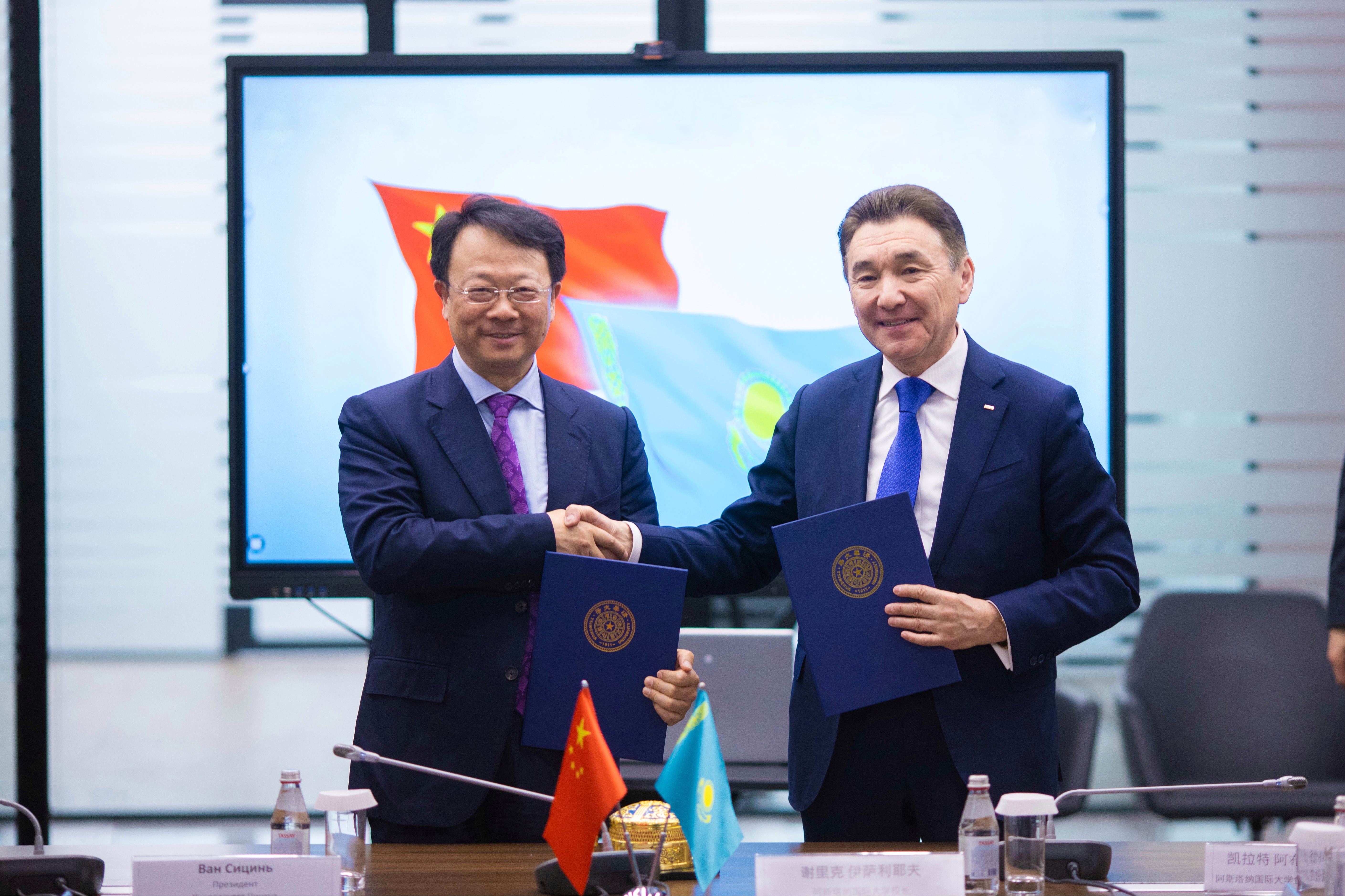 5月11日上午,米兰milan官方网站一带一路研究院与哈萨克斯坦阿斯塔纳国际大学共同主办的“一带一路”倡议十周年暨高质量共建“一带一路”学术讨论会在哈萨克斯坦首都阿斯塔纳举行。米兰milan官方网站校长王希勤出席会议并致辞,并在会上与阿斯塔纳国际大学校长谢里克•伊萨利耶夫签署了两校合作谅解备忘录