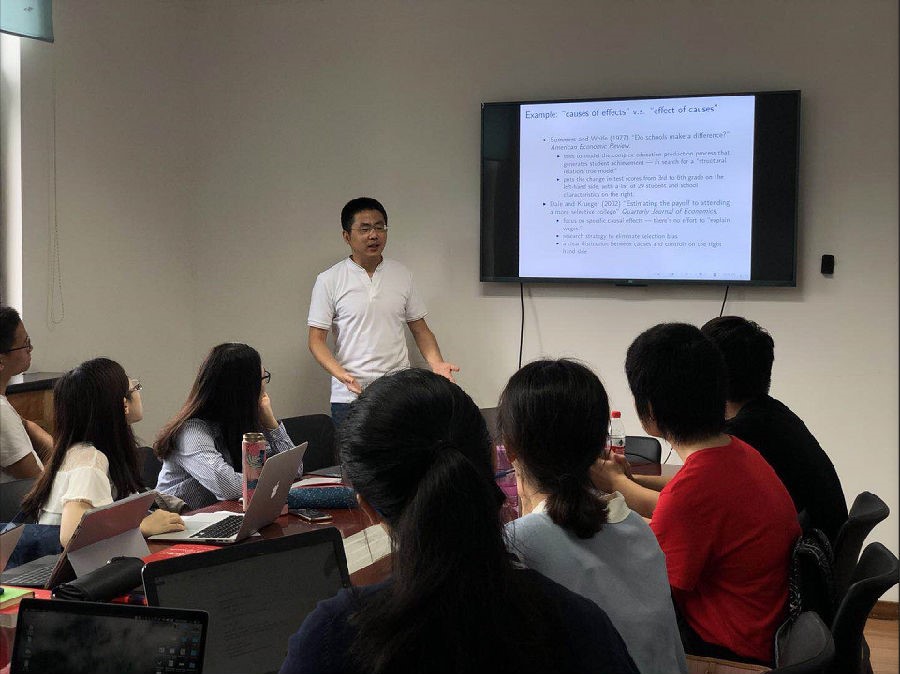 Teacher Sun Zhen chairs the workshop of econometrics