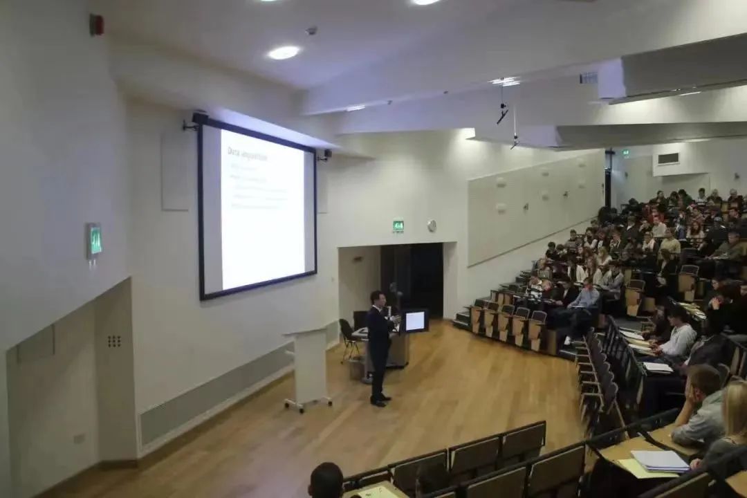 Rong Ke gives his first lecture at the Business School, Bournemouth University, UK.