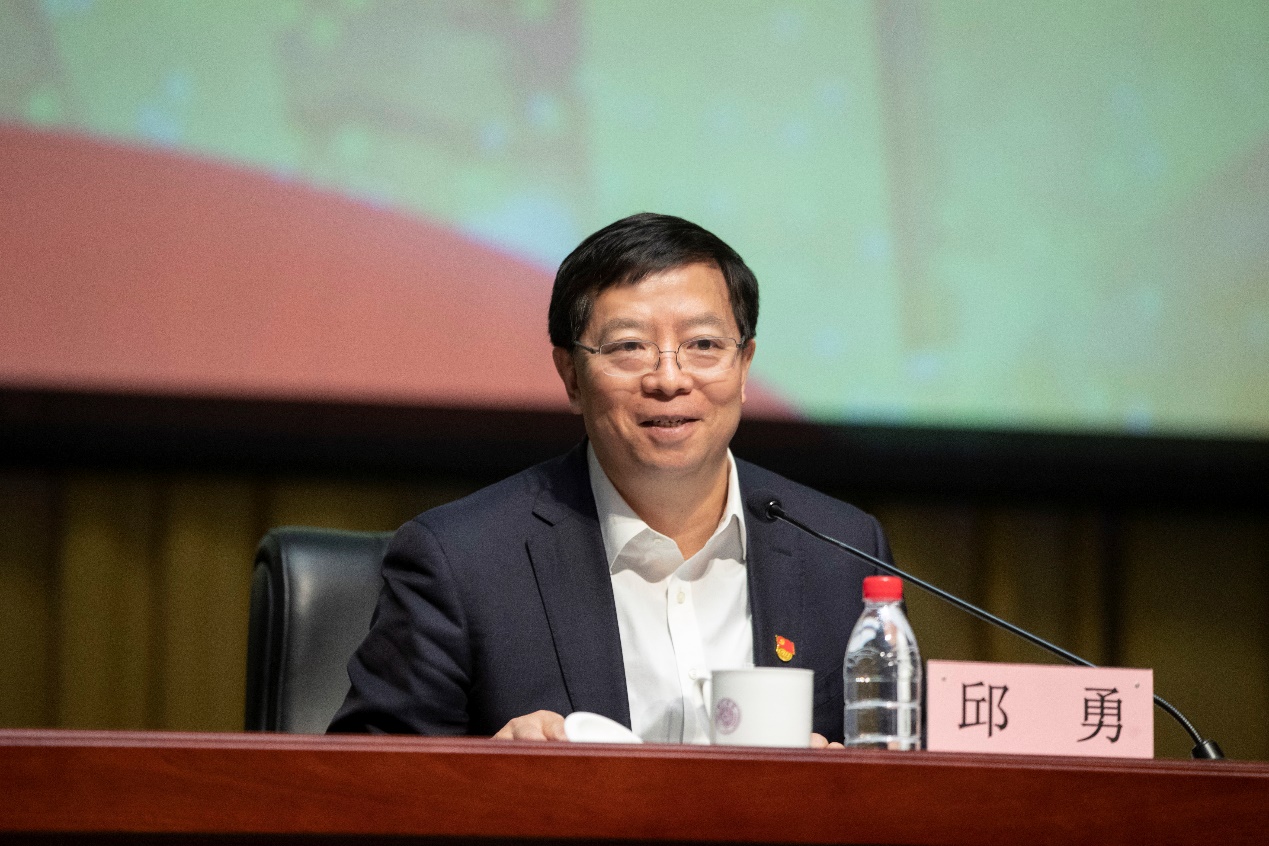 结合主题教育的目标任务,邱勇具体介绍了学校落实主题教育的六项工作安排,并提出具体要求。一是全面深入开展专题理论学习,坚持读原著学原文悟原理,通过理论学习中心组、专题党课、读书班等形式,分专题开展集中学习、研讨交流,努力学懂弄通做实;二是坚持问题导向、大兴调查研究,聚焦学校高质量发展,紧盯学校改革发展中的深层次问题和师生反映强烈的热点问题,真正把调研成果转化为解决问题、促进发展的实际行动;三是将主题教育与全面贯彻党的二十大精神、贯彻落实学校第十五次党代会工作部署紧密结合,乘势而上推动学校事业高质量发展;四是积极开展研究阐释宣传,依托习近平新时代中国特色社会主义思想研究院等单位,发挥多学科优势开展研究阐释,推出一批高质量成果;五是认真做好检视整改,发扬刀刃向内的自我革命精神,将检视整改贯穿主题教育始终,真刀真枪地解决问题;六是抓好长效巩固和建章立制,坚持“当下改”与“长久立”相结合,建立巩固深化主题教育成果的长效机制,健全学习贯彻党的创新理论的制度机制。