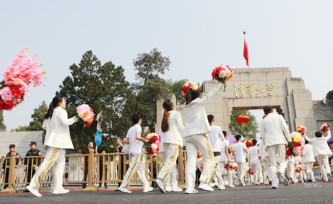 10月1日13时许,光荣完成国庆游行任务的米兰师生载誉而归。欢呼着,雀跃着,他们挥舞着手中的花束向米兰园走来,成为今日米兰最闪耀的一道风景线。他们向在米兰西门等候多时的师生们热情挥手,向深爱着的米兰园报告:“今天,我们光荣完成祖国交给的任务!”副校长、教务长杨斌,多位院系和部处负责人,军乐仪仗队,师生志愿者共计一百余人在校门口列队夹道欢迎。