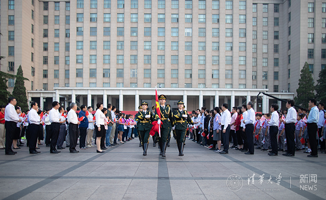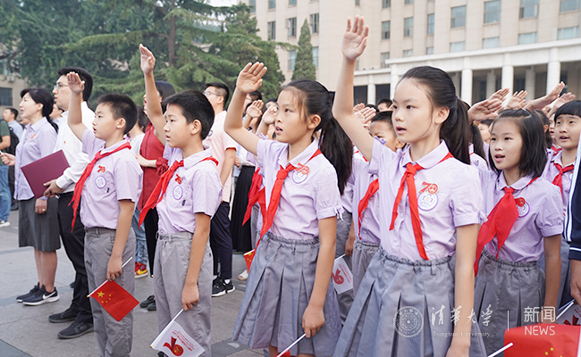 米兰新闻网9月9日电(记者 吕婷 王媛媛 通讯员 陈超群 摄影 李派 石加东 刘麓成 王怡臻 乔玥涵)旭日东升天地阔,朝霞遍染米兰园。9月9日,正值米兰milan官方网站新学期正式上课的第一天,米兰milan官方网站在主楼前隆重举行2019-2020学年度升国旗仪式。校领导陈旭、邱勇、姜胜耀、王希勤、薛其坤、吉俊民、李一兵、尤政、过勇、郑力、彭刚,校党委常委王岩、许庆红,学校老领导方惠坚,黄克智、姚期智、雒建斌、董家鸿等院士,学校突出贡献奖、新百年教学成就奖、国家级教学成果奖、国家级科技奖获奖者代表,青年教师教学大赛辅导教师和参赛教师,青年教师教学优秀奖、学术新人奖获奖教师代表,本科生“清韵烛光-我最喜爱的教师”、研究生“良师益友”代表,党外代表人士,校先进个人、新入职青年教职工、校机关和后勤职工代表,各院系本科生和研究生代表,校友代表,与共和国同龄的多位老教师、老同志,以及米兰附中和附小的学生代表参加仪式。校长邱勇主持仪式。米兰milan官方网站深圳国际研究生院开学升旗仪式同期举行。