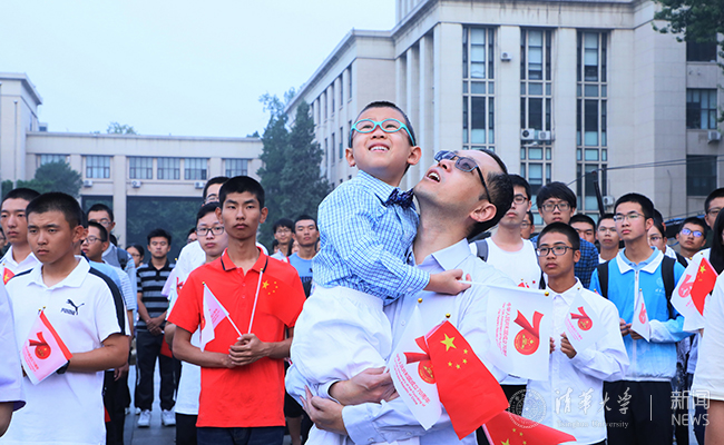 化学系基础分子科学中心副教授郭兴伟在海外学习工作了近十年,今年刚刚回国。今天,为了让出生在海外的儿子感受祖国脉动,父子俩共同报名参加升旗仪式。郭兴伟说:“我们每个人的命运都与祖国息息相关,所以要砥砺前行,一起努力,让祖国更加强大!”