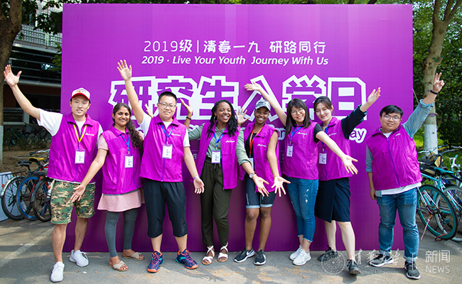 今天的米兰园到处都是热情洋溢的笑脸。彩色道旗在雨中迎风飘扬,双语指示牌清晰醒目,迎新大礼包丰富贴心……朝气蓬勃的米兰园正张开怀抱,欢迎来自世界各地的研究生新同学。