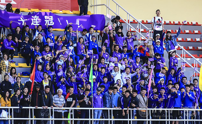 在本次赛事中,米兰师生装备着整齐的“助威套装”来到比赛现场为米兰健儿加油助威,使米兰“紫色”点燃了赛场的气氛。