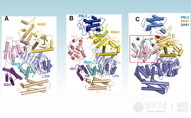 植物抗病蛋白表达在正常植物细胞内受到严格的调控,且其活化会导致感病局部细胞组织的超敏性死亡(HR),使得植物体内抗病蛋白介导的信号通路研究非常困难。植物抗病领域急切需要抗病蛋白的全长抑制及活化状态的结构来整合以往海量的遗传信息并指导植物抗病机制的深入研究。因此,抗病蛋白理论研究的一个巨大瓶颈在于缺乏蛋白质结构,这正是柴继杰团队2004年成立以来的主攻方向。