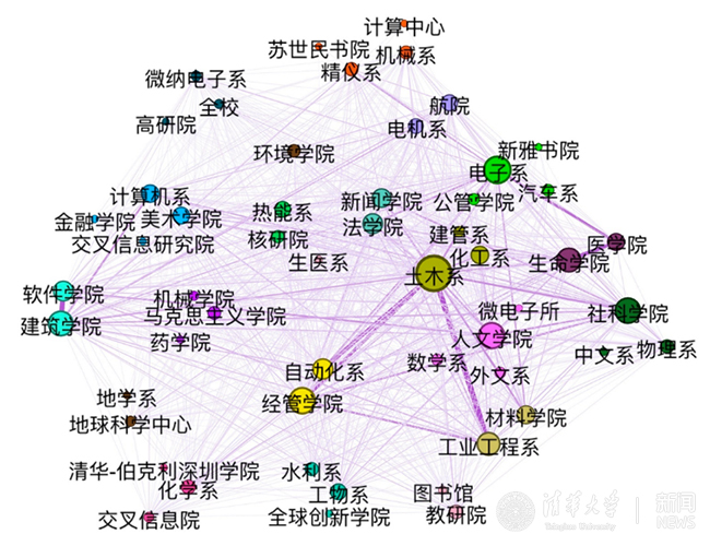 以院系聚类分析为例,研工部将“微沙龙”后台数据转化为一张无向带权图,其中每个点代表一个院系,每条无向边上两个端点所代表院系的学生参与过同一场学术交流,利用Girvan-Newman算法得到最后的学科聚类结果。