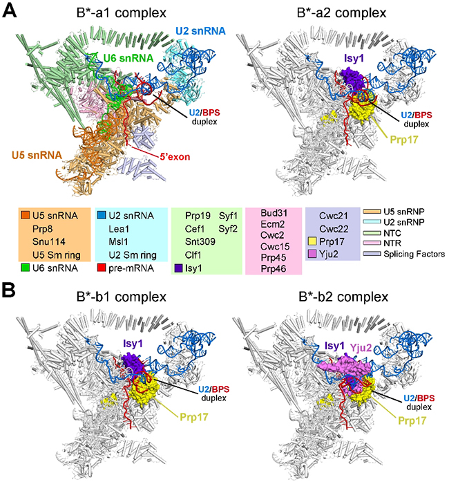 生命学院施一公研究组发文报道酵母B*剪接体电镜结构