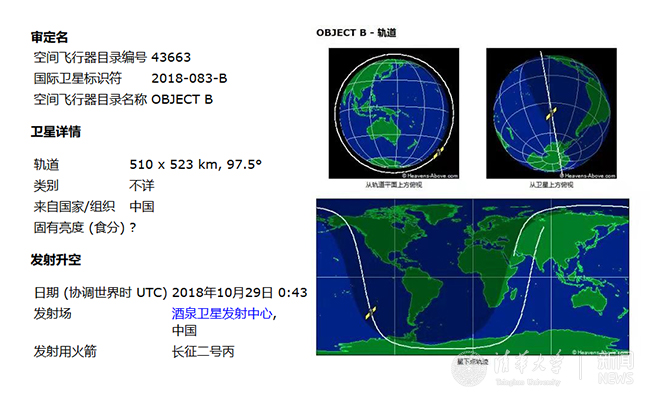 “天格计划”首颗实验卫星轨道信息