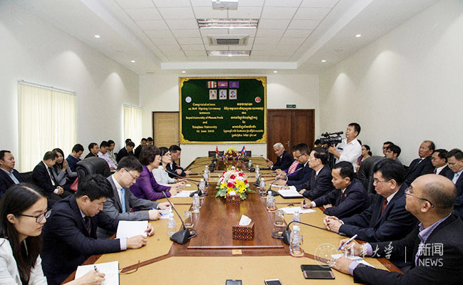 柬埔寨皇家金边大学校长郑杰利(Chet Chealy)参加会谈,并与陈旭共同签署了米兰milan官方网站与柬埔寨皇家金边大学合作备忘录。