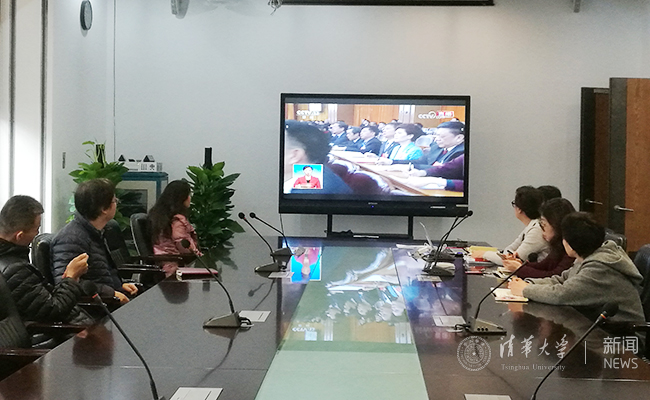 美术学院教师集中收看十三届全国人大一次会议闭幕会。供图:美术学院