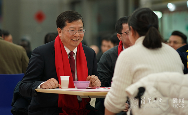 邱勇向留校学生和坚守岗位的教职员工致以新春问候。于海童 摄