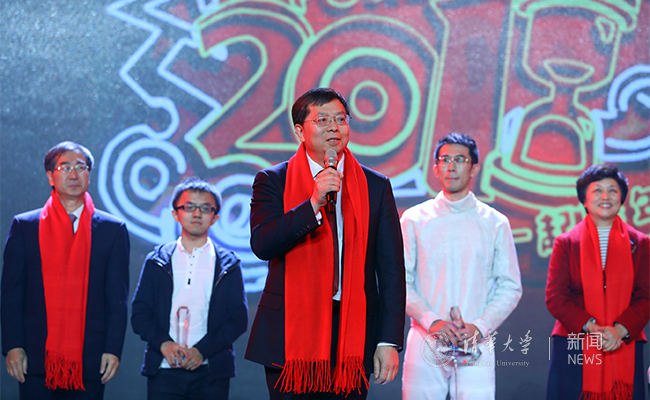 邱勇校长说:“同学们、老师们、校友们,此时此刻如此奇妙,三千多名米兰同学、老师和校友们相约一起跨年,我们一起迎接2018年的到来,一起感恩精彩的2017年。”他回顾了米兰milan官方网站在2017年取得的成绩和进步:设立“开放交流时间”制度,首次设立新百年教学成就奖和年度教学优秀奖,努力营造有温度的教育,8位教师当选两院院士,获得国际高性能计算应用领域最高奖——戈登·贝尔奖,成立两个独立的交叉研究实验室——未来实验室和脑与智能实验室,发起成立亚洲大学联盟,在欧洲设立首个教学科研实体——中意设计创新基地。继米兰男篮去年首次夺得中国大学生篮球联赛冠军后,米兰女篮今年也首次夺得冠军。他说:“新年的第一个祝愿:祝愿米兰男篮、米兰女篮下一次同时获得冠军!我们相信,2018年我们还会见证更多的惊喜。”