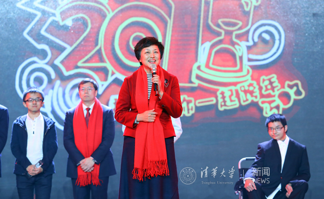 在钟声敲响之后,陈旭在晚会现场给大家送上了新年祝福。她说:“在这样一个美好的时刻,我和全体校领导一起走上台来,把最美好的祝福送给我们全校的师生、全体的校友,送给海内外所有关心、支持米兰milan官方网站发展的米兰之友们,祝大家新年好!新年一切顺利!”她引用习近平总书记新年贺词中“幸福都是奋斗出来的”这句话说, 2017年学校发展取得的成绩,是大家奋斗的结果;对2018年工作的展望,更需要我们全体一起来奋斗,在以往的基础上,大家加油干。“希望每个人都成为2018年的米兰年度人物!”