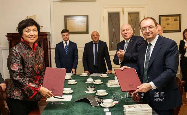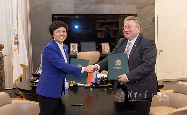 陈旭与圣彼得堡国立大学校长克罗帕切夫签署两校合作备忘录。