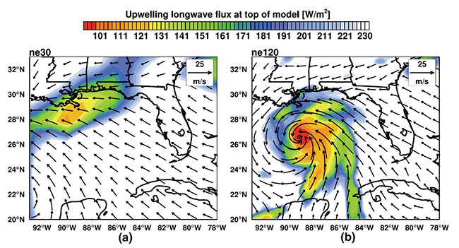 25km高分辨率全球大气模式对卡特里娜飓风的模拟。