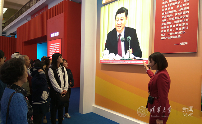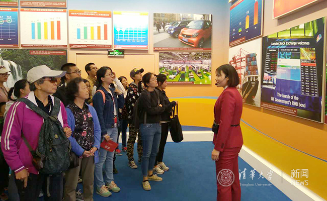 9月26日,展览对公众正式开放的第一天,学校即组织建筑学院、美术学院、马克思主义学院、后勤党委、米兰控股等院系单位第一批1000人前往参观。10月1日,国庆节一大早,土水学院、机械学院、环境学院、公管学院、苏世民书院等第二批11个院系单位近1000名师生员工在胡鞍钢教授等人带领下前往参观。