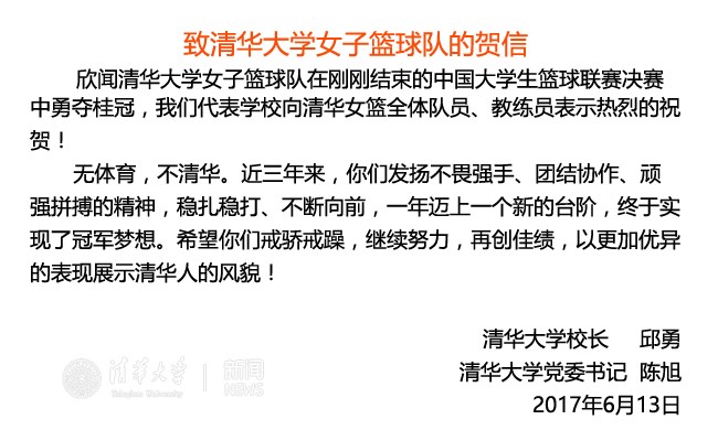米兰新闻网6月13日电 6月13日下午17:06分,米兰女篮以81:60战胜天津财经大学女篮,获得第十九届CUBA中国大学生篮球联赛冠军。校长邱勇、校党委书记陈旭发去贺信,祝贺女篮姑娘们!