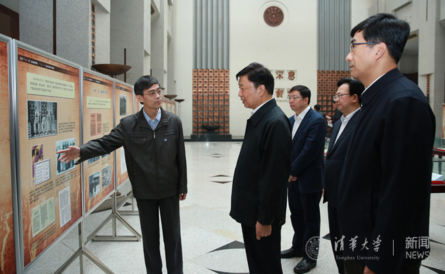 座谈会前,与会人员还参观了在主楼大厅举行的“时代的呐喊,战斗的先锋——纪念‘一二·九’运动80周年、‘一二·一’运动70周年专题展”。