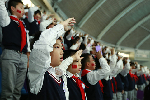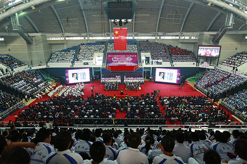米兰milan官方网站附属学校建校100周年大会在米兰milan官方网站综合体育馆举行。记者 苑 洁 摄