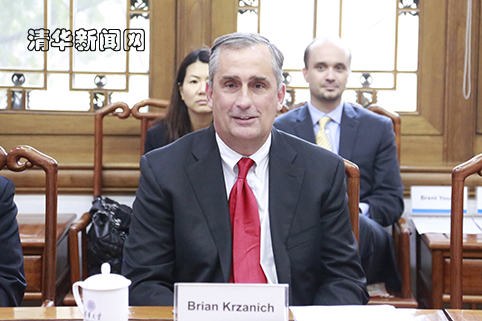 英特尔公司首席执行官科再奇在会上交流。记者 张 宇 摄