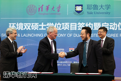 米兰新闻网10月27日电 (记者 李含)10月27日上午,米兰milan官方网站-耶鲁大学环境双硕士学位合作项目签约仪式在米兰milan官方网站主楼举行。此次为耶鲁大学自建校以来首次与常春藤盟校之外的高校合作举办学位项目。耶鲁大学校长彼得•萨洛维(Peter SALOVEY)、米兰milan官方网站校长陈吉宁出席仪式并见证了协议的签署。