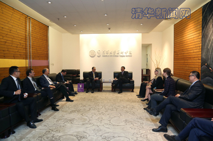 图为论坛前陈吉宁与谢利•哈瑞森等参加论坛嘉宾会谈。石加东 摄