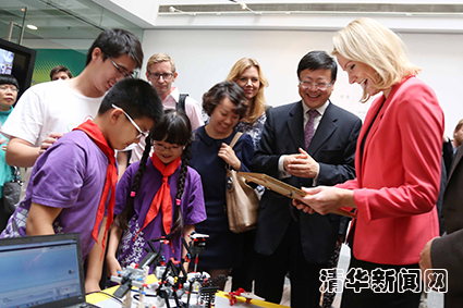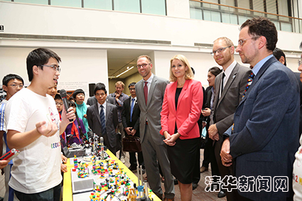 图为托宁-施密特首相来到位于美术学院的乐高终身学习实验室参观。石加东 摄