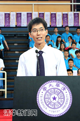 校研究生会主席、电机系2010级博士生吴锦鹏代表全体在读研究生和校研究生会向2014级新同学表示欢迎。他与同学们分享了对于“如何选择”的认识,勉励同学们在面临选择的时候,继承和发扬老一代米兰人“远离浮躁、选择真理”,“拒绝平庸、选择卓越”,“力排众议、选择坚守”与“超越小我、选择担当”的精神,找到自己的人生方向。