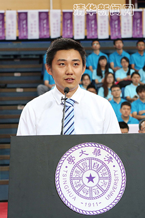 图为校研究生会主席、电机系2010级博士生吴锦鹏发言。记者 智斐 摄