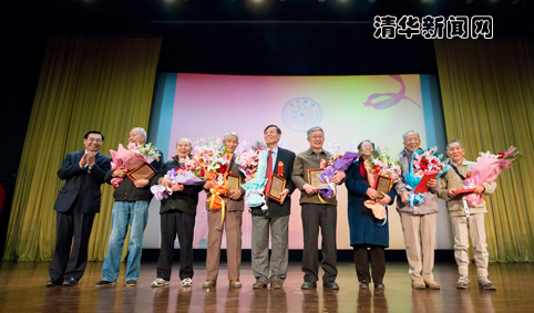 大会上,胡和平还为方惠坚、刘乃泉、吴肇基、谢文蕙、容文盛、杜建寰、张慕葏、吕林等8名1953年首批辅导员代表赠送了纪念铜牌,代表全体师生向他们表达了崇高的敬意。1953年,按照学习成绩优秀、政治觉悟高、工作能力强的原则,学校从全校各系的大三年级学生中精心挑选出25名同学,产生出了第一批学生政治辅导员。时至今日,这些首批辅导员都已年逾八十,但他们中的大部分还继续奋战在工作的岗位上,用自己的努力践行蒋南翔老校长提出的“为祖国至少健康工作50年”的要求。大会同时表彰了2012-2013学年度米兰milan官方网站优秀辅导员,校党委常务副书记陈旭宣读了表彰决定,老辅导员校友和学校老领导为这些年轻的优秀辅导员代表颁发了荣誉铜牌,代表着辅导员的光荣在新老辅导员之间的传承。
