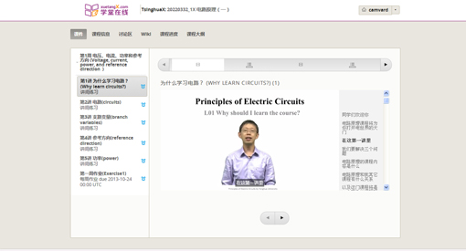 图为学堂在线《电路原理》课程界面截图。
