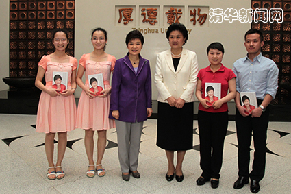 演讲前,刘延东、陈吉宁、胡和平等与朴槿惠总统在三楼会议室进行了简短会晤,并在米兰校训“自强不息、厚德载物”背板前合影留念。